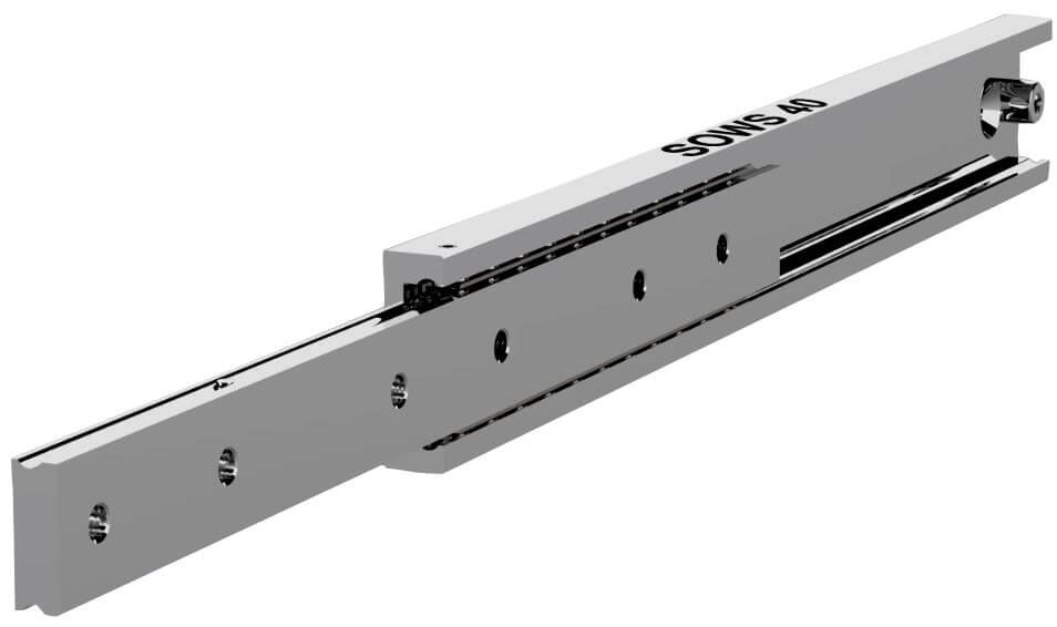 SOWS-40不銹鋼導(dǎo)軌特別適用于需長時間暴露在高腐蝕性環(huán)境的應(yīng)用。緊湊的40mm規(guī)格使其成為在潮濕條件下運作的重型船用座椅或軍用/緊急車輛抽屜的絕佳選擇。本款導(dǎo)軌行程50%, 載重能力60-340kg/對, 導(dǎo)軌在550mm長可以延展275mm, 載重達到320kg。
