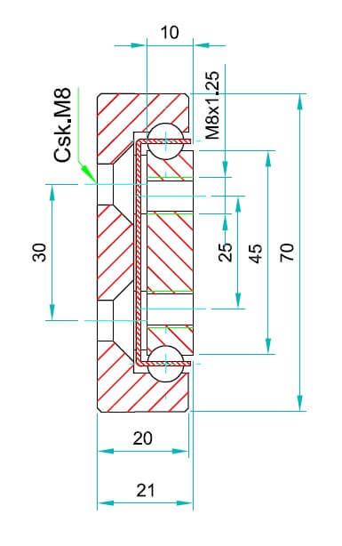 本款導軌由符合EN 10277的冷抽鋼C45E+C制成。珠槽采用雷射切割的鍍鋅板,鋼珠為符合DIN 5401的C85 G100規(guī)格。單支導軌每公尺重9.19kg。
