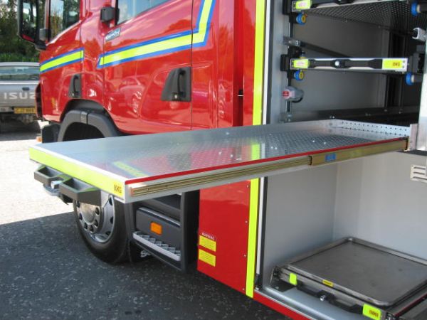 消防車輛上的器具, 設(shè)備, 零件收納系統(tǒng)。