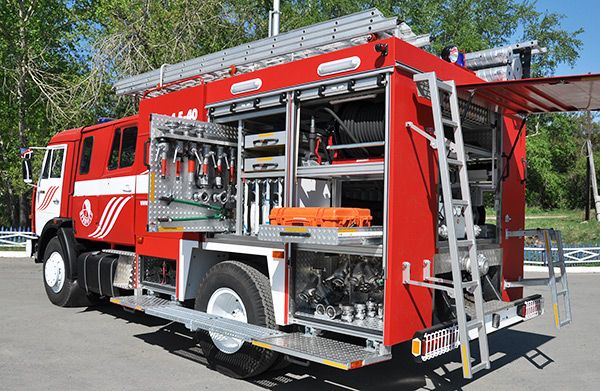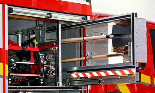 消防車輛上的器具, 設(shè)備, 零件收納系統(tǒng)。